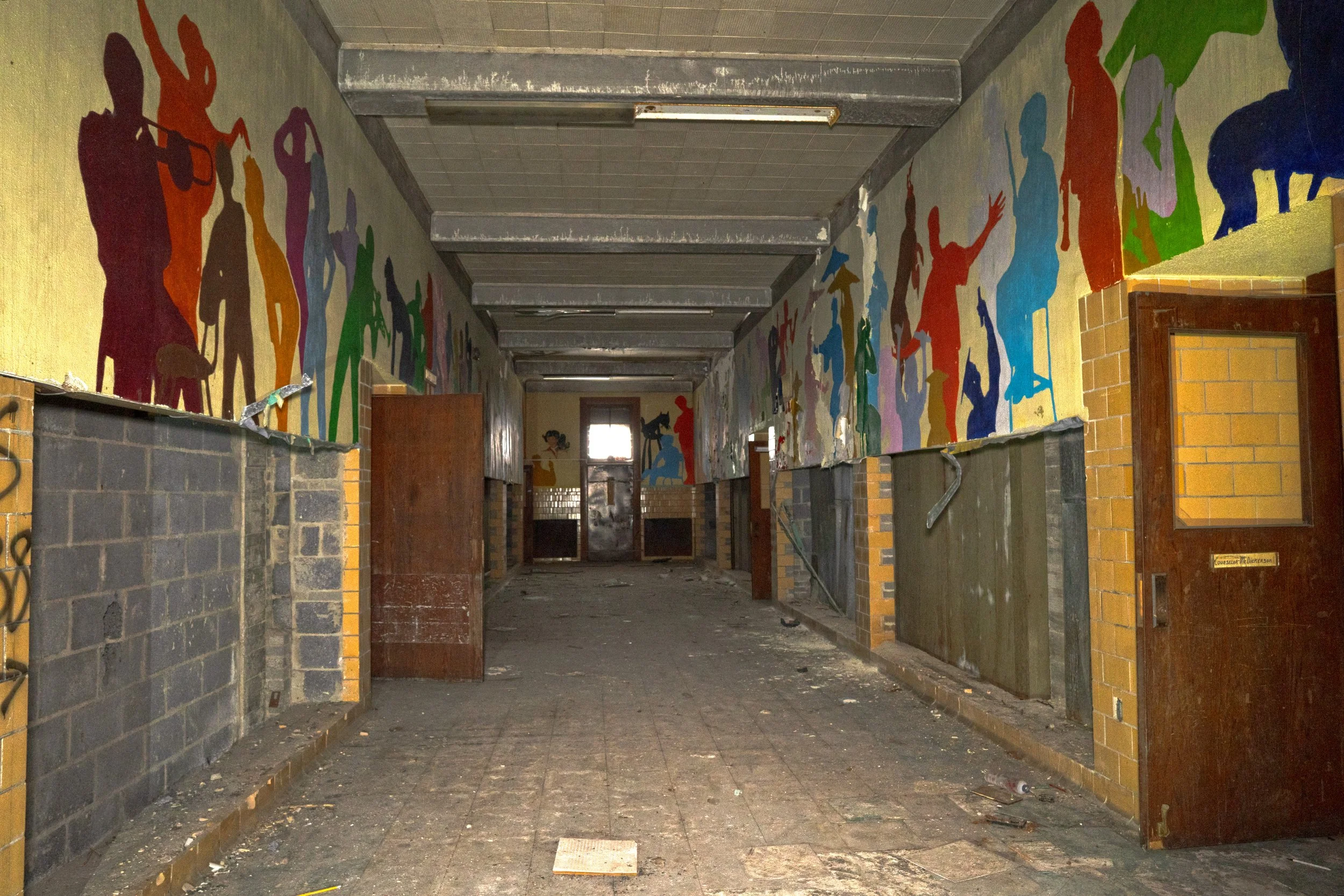 was a elementary school on the east side of Detroit, that was closed due to declining enrollment since being abandoned it has faced significant water damage, it is known for its 22 foot tall auditorium ceiling with a english G on the curtain.