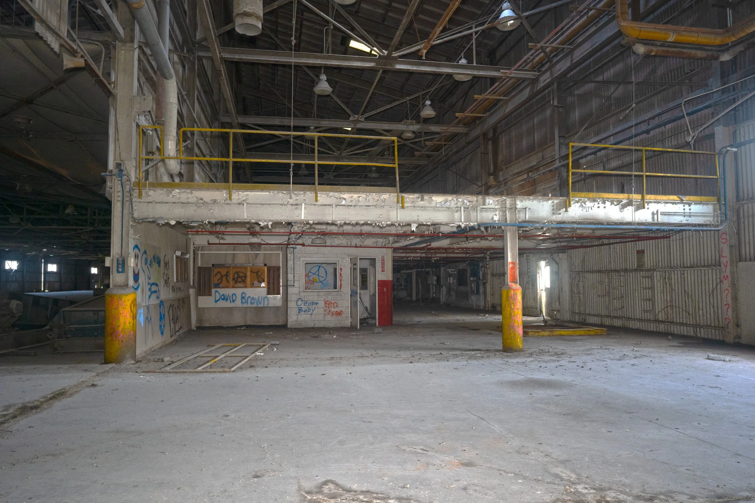 A large portion of the plant is a long hallway that leads into a warehouse like space