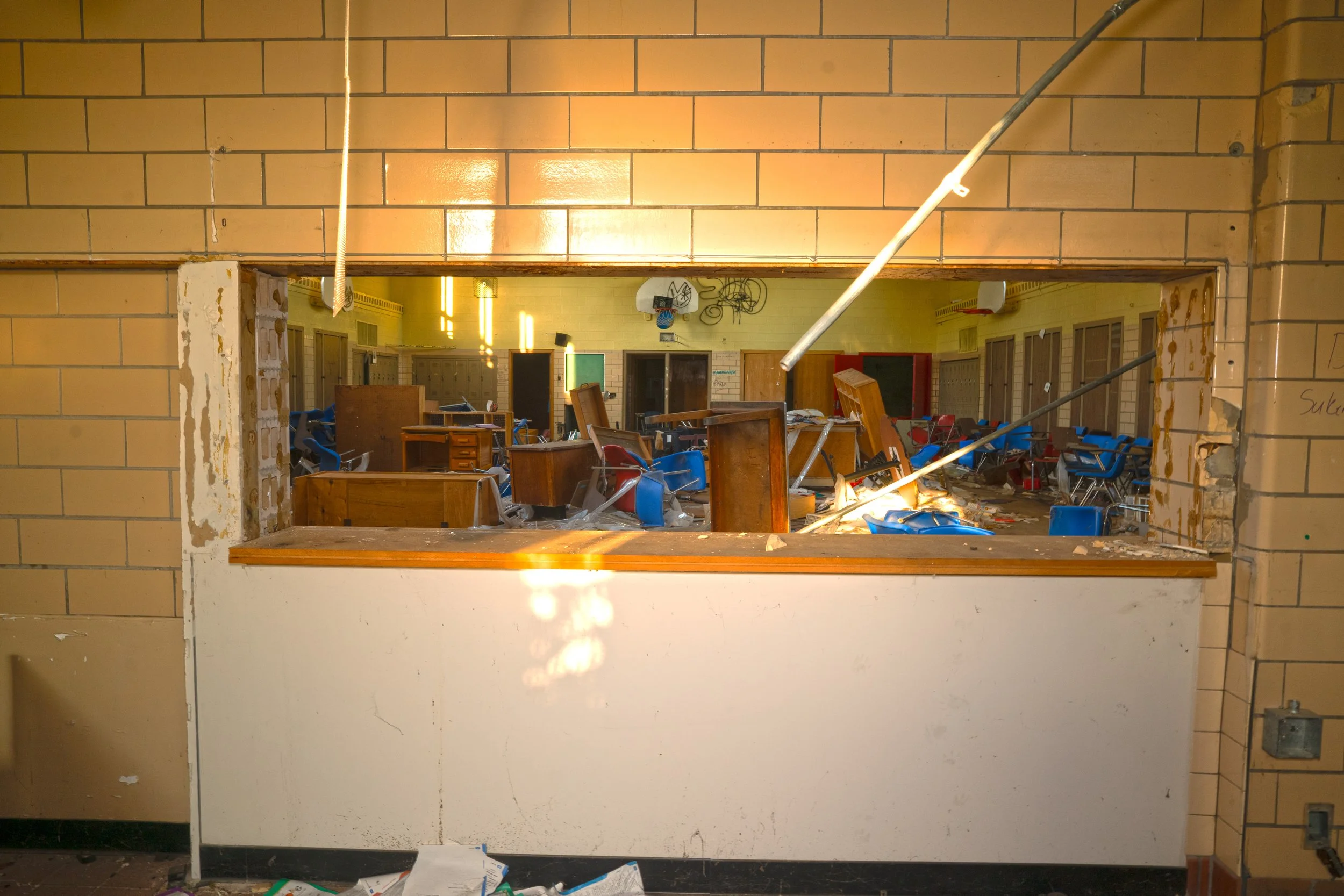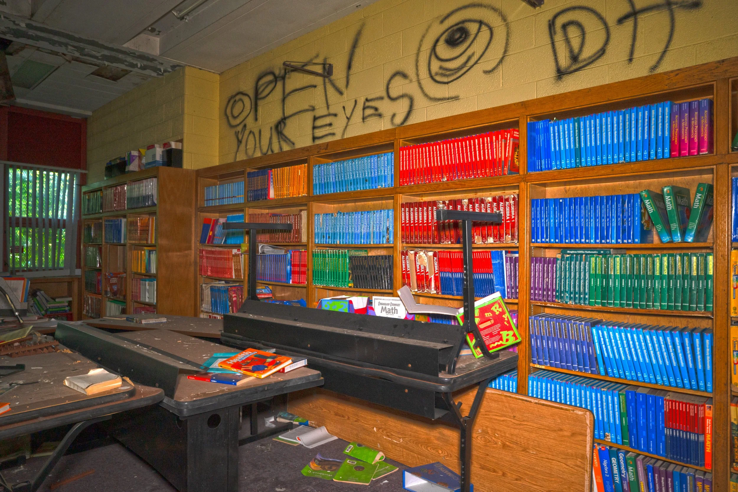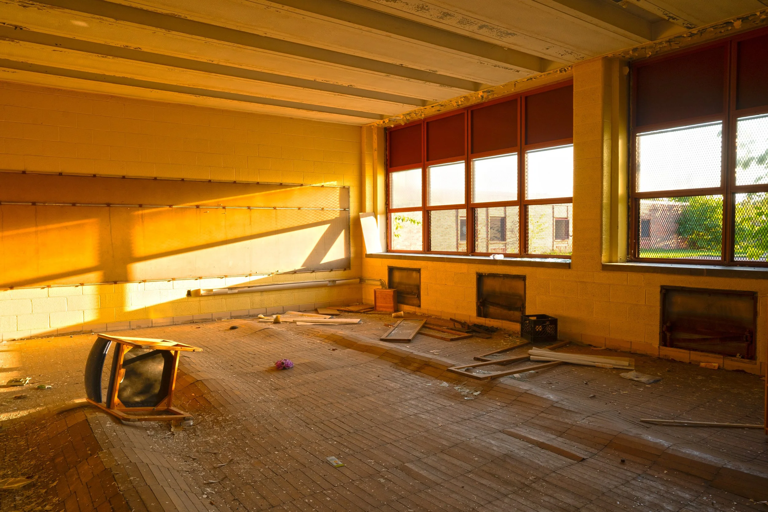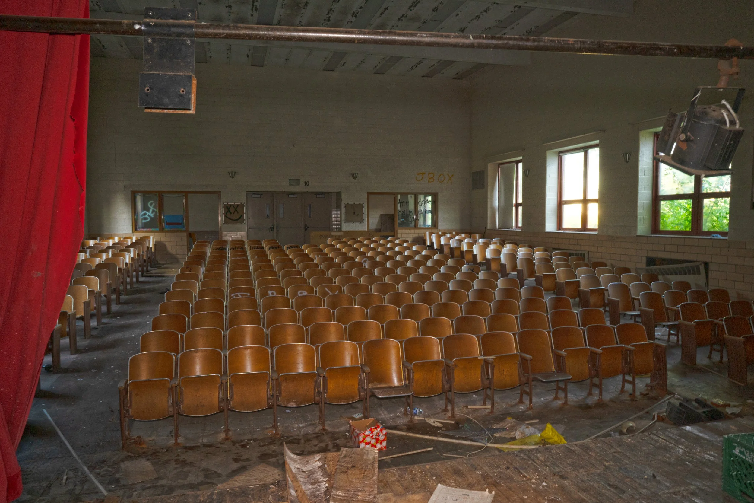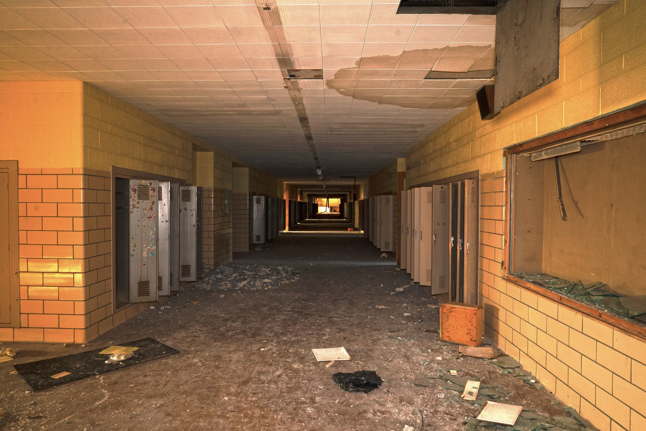 Bunche was a very unique twist of CMU, while many Detroit schools built in the 1950s or with additions in the 50s have boring painted concrete brick designs. Bunche somehow puts a interesting twist into its architectural style. From the curves to the layout of the school it is very unique, also of note is the inclusion of two separate kindergarten rooms both completed with bay windows. Bunche will also be remembered by me for its abundance of papers and textbooks just laid all over the floor everywhere. Along with this the one school in Detroit I have seen with a library still having books or other media inside, the other thing of note would be the desks still semi lined up in many classrooms.