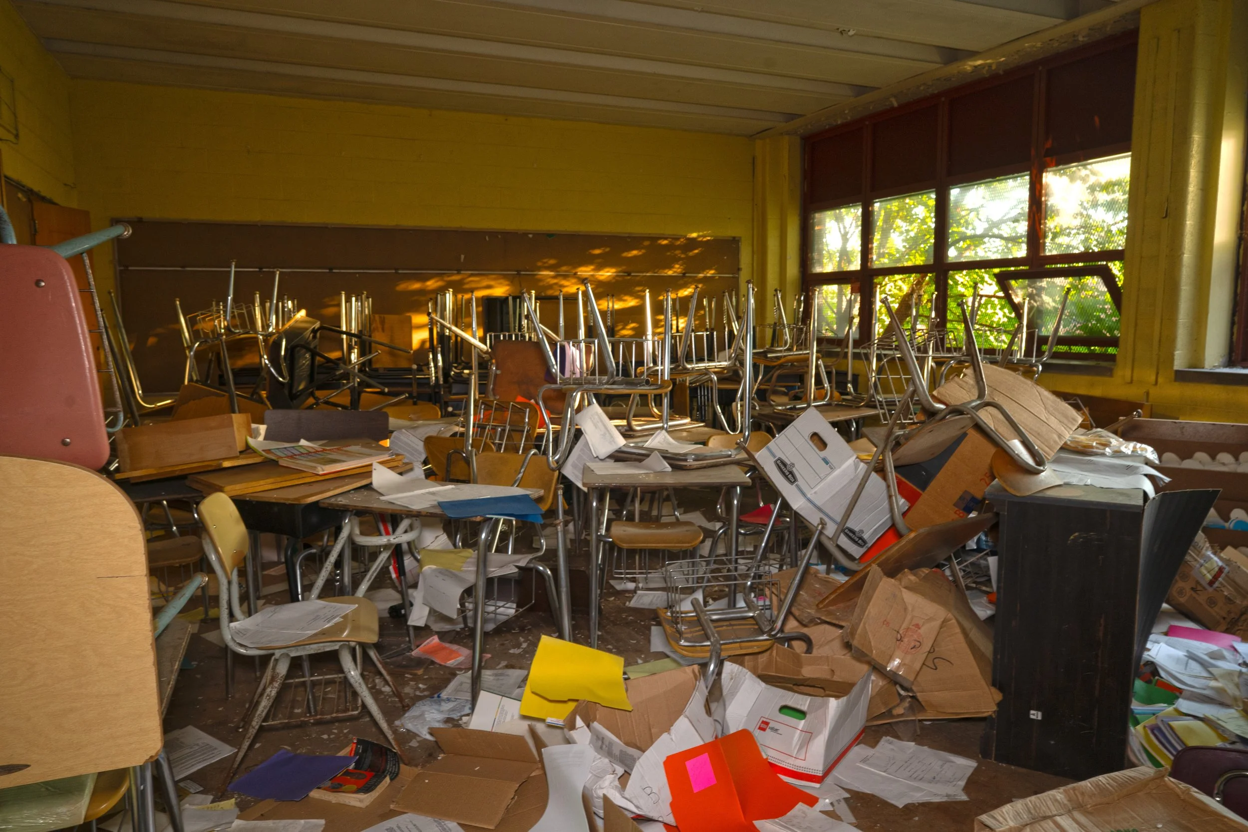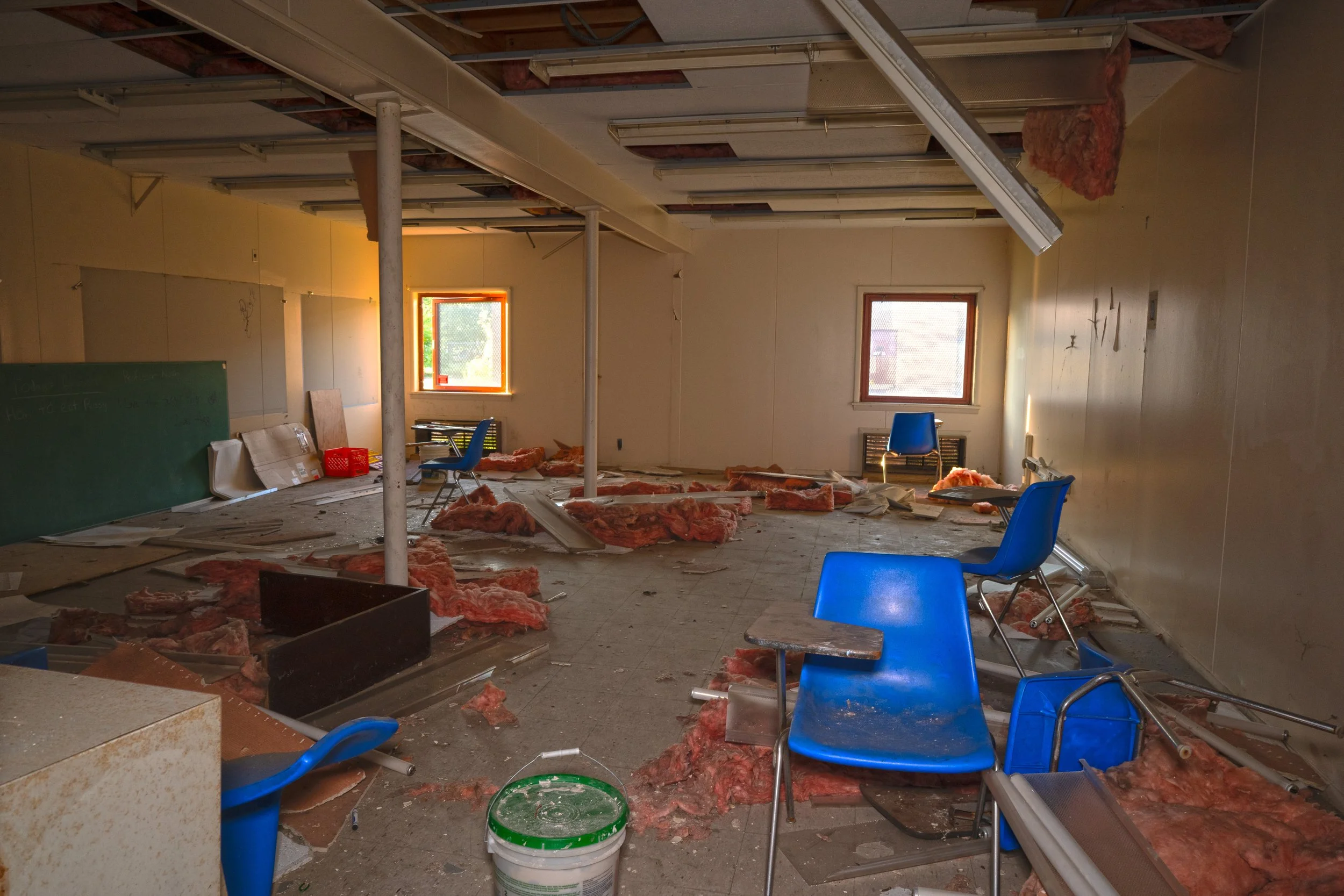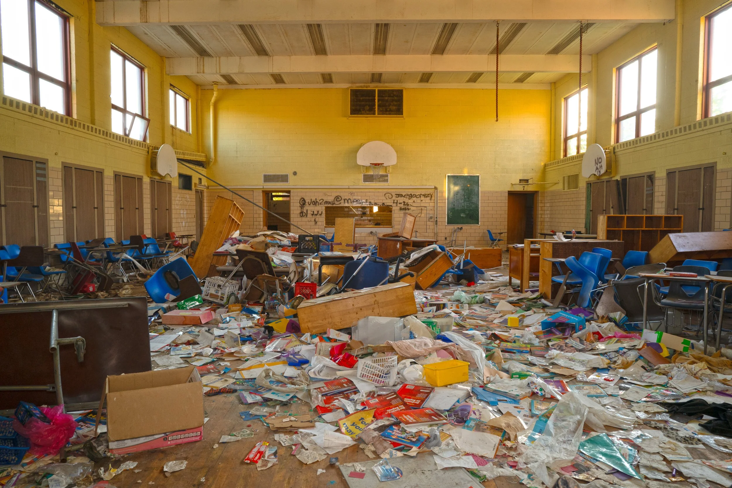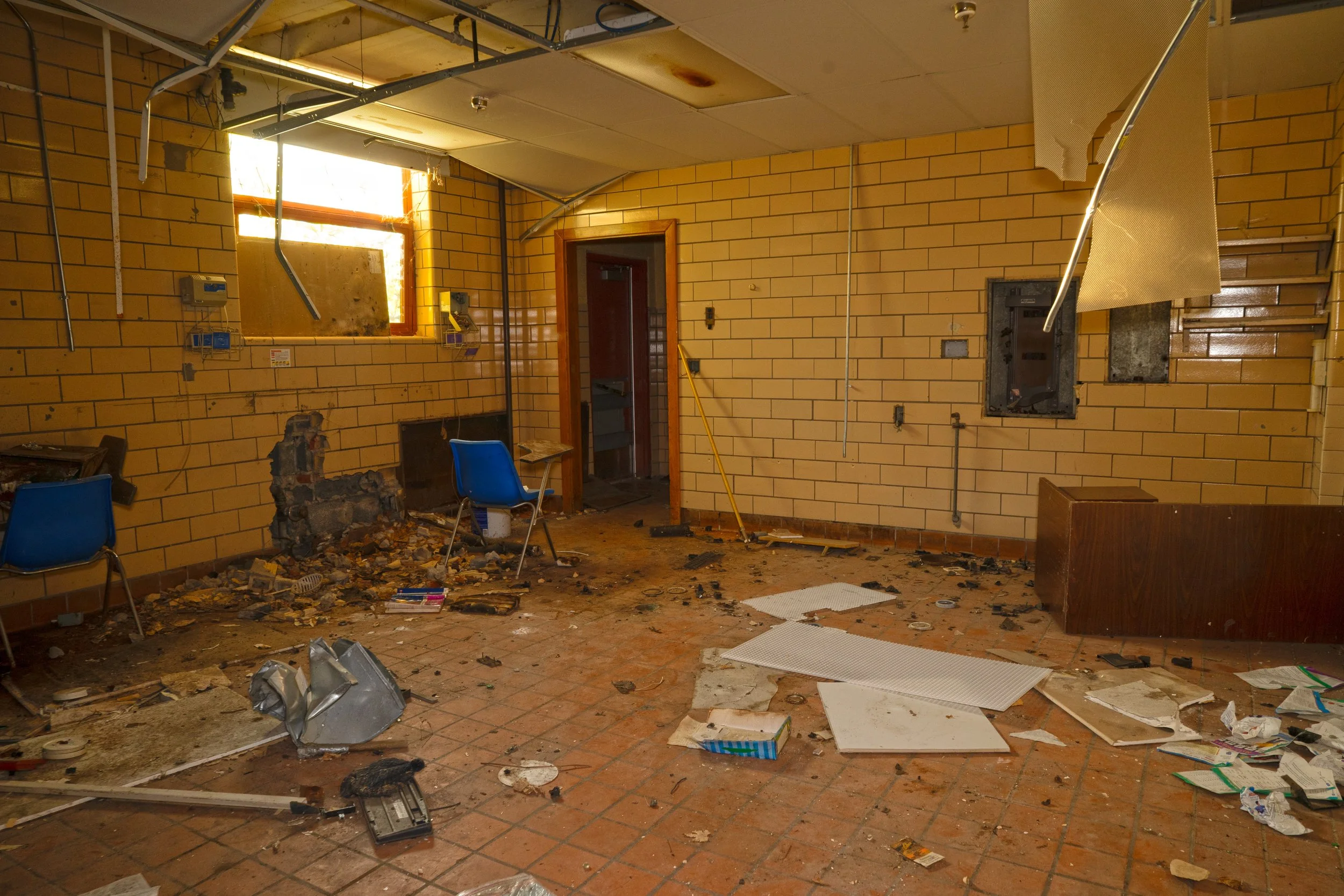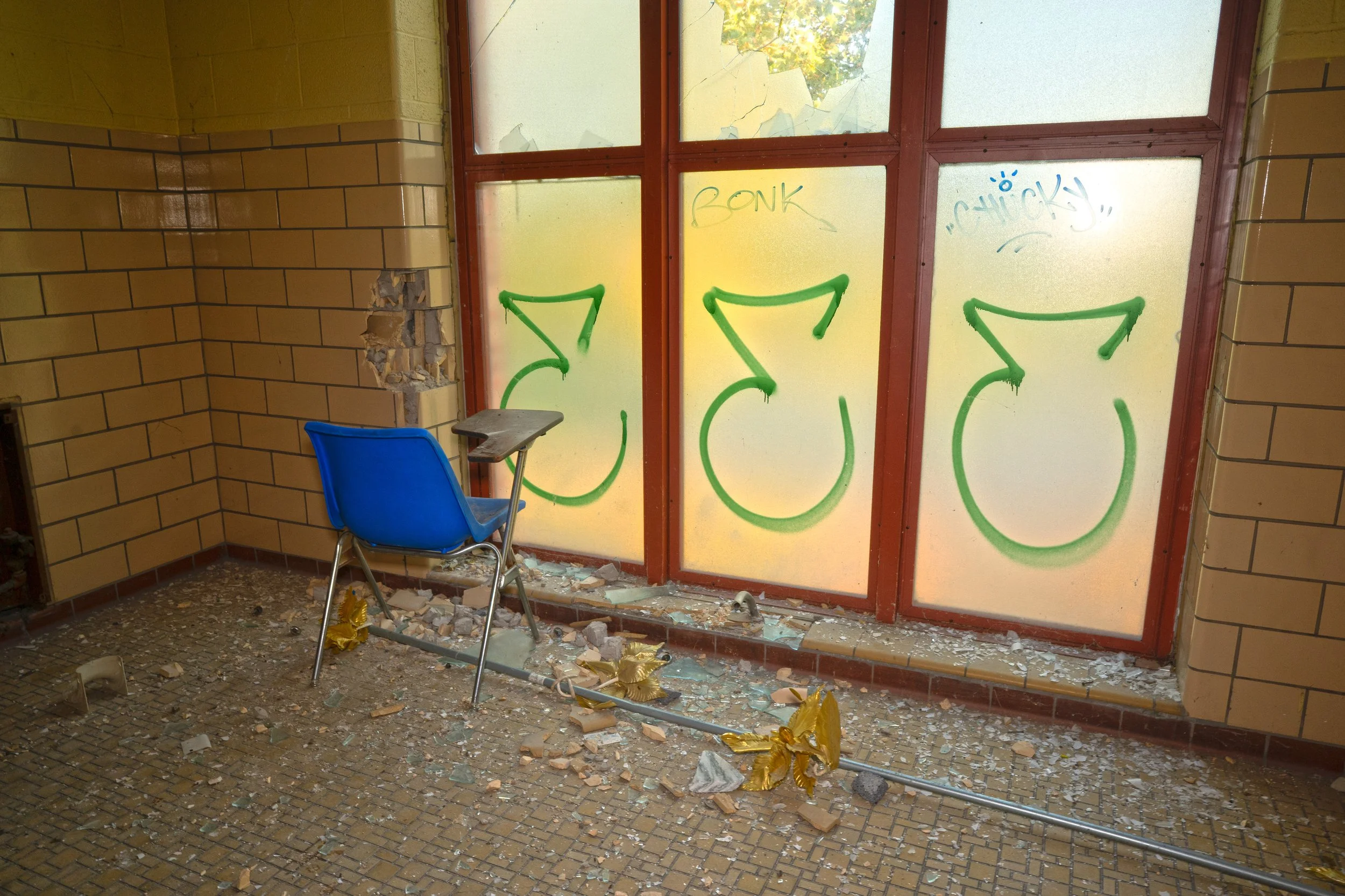 Bunche was a very unique twist of CMU, while many Detroit schools built in the 1950s or with additions in the 50s have boring painted concrete brick designs. Bunche somehow puts a interesting twist into its architectural style. From the curves to the layout of the school it is very unique, also of note is the inclusion of two separate kindergarten rooms both completed with bay windows. Bunche will also be remembered by me for its abundance of papers and textbooks just laid all over the floor everywhere. Along with this the one school in Detroit I have seen with a library still having books or other media inside, the other thing of note would be the desks still semi lined up in many classrooms.