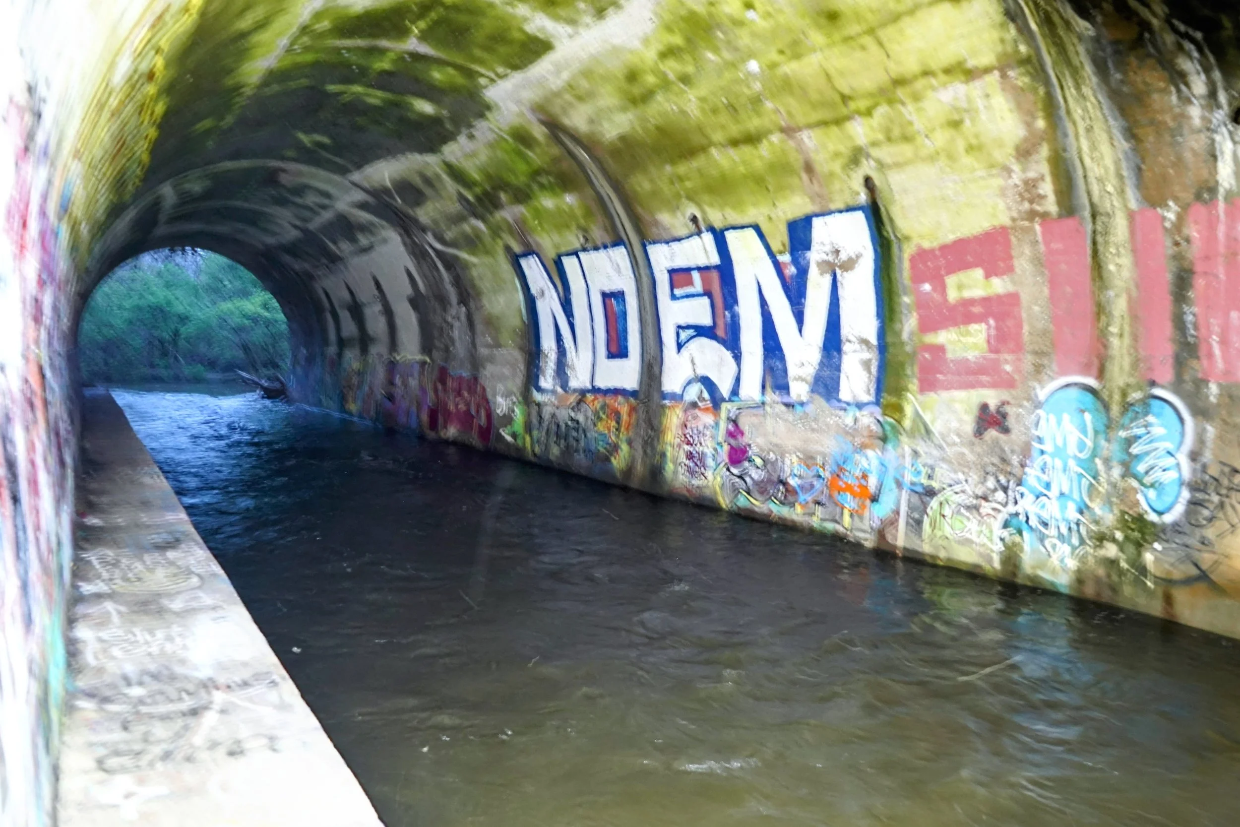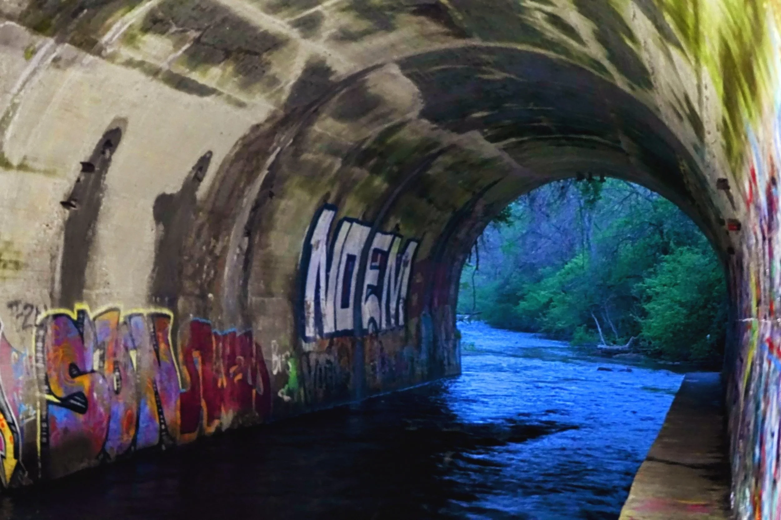 Nearly a hiking trail to something we were too late to truly experience but the nature aspect of this building was the capture of the day and the tunnel walkthrough made it worth it with the worry of falling into the river below. Walking across the about foot gap of tunnel walkway was very interesting to do and in this case the building was gone but the adventure to it was still 100% there which made it worth the trip out