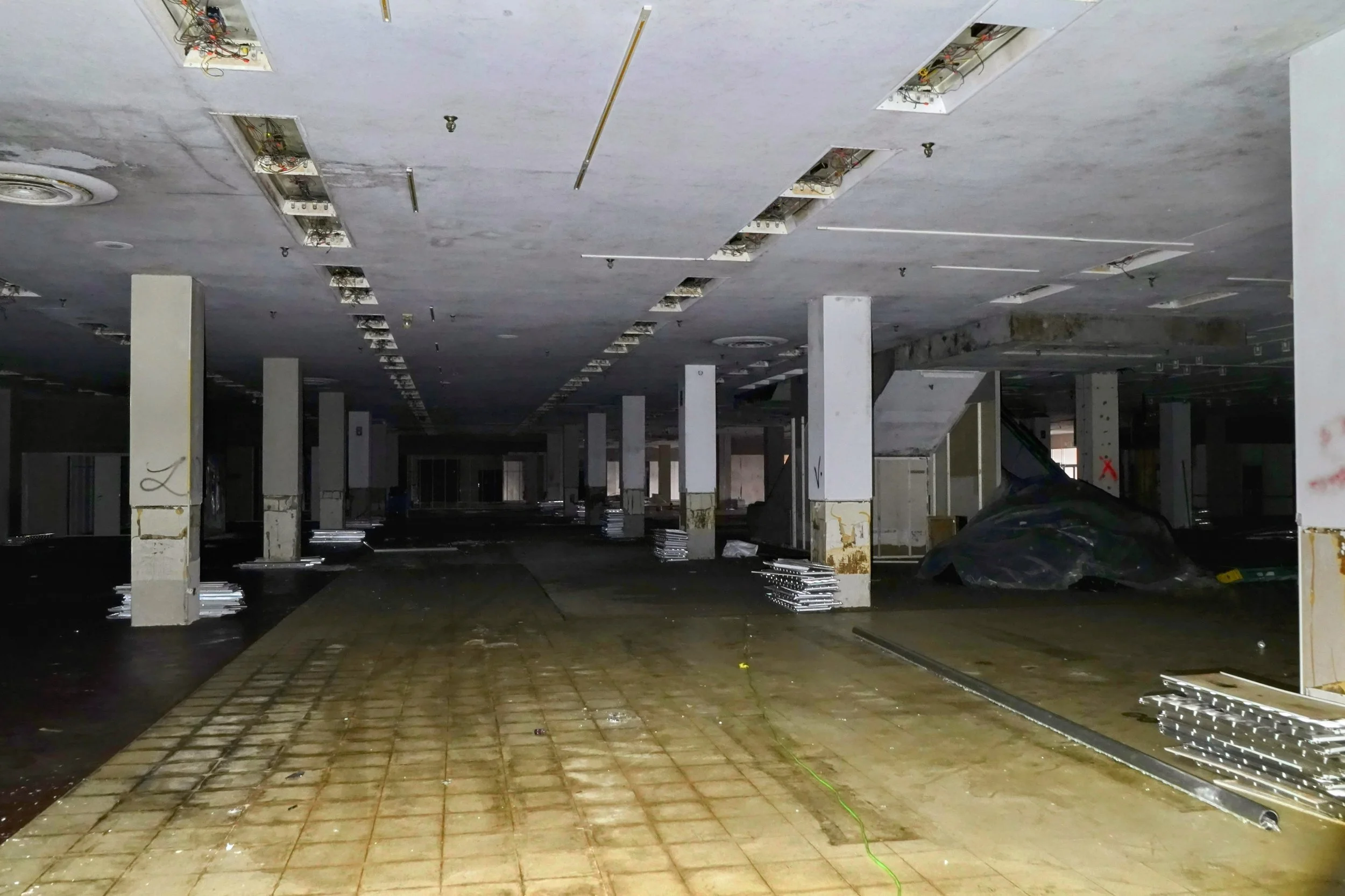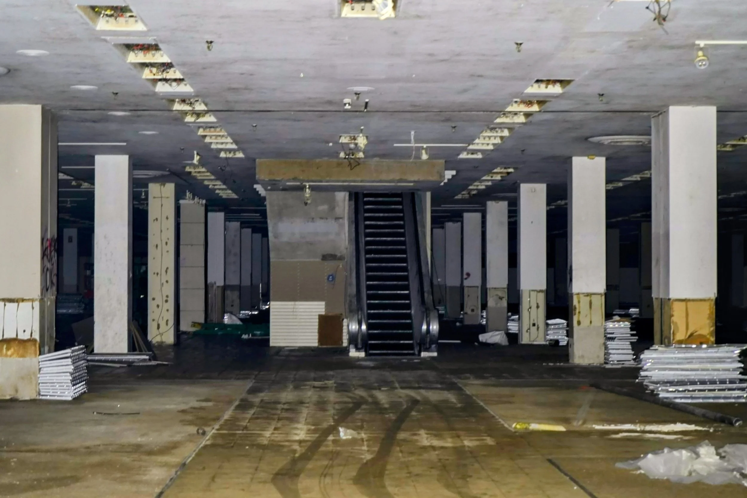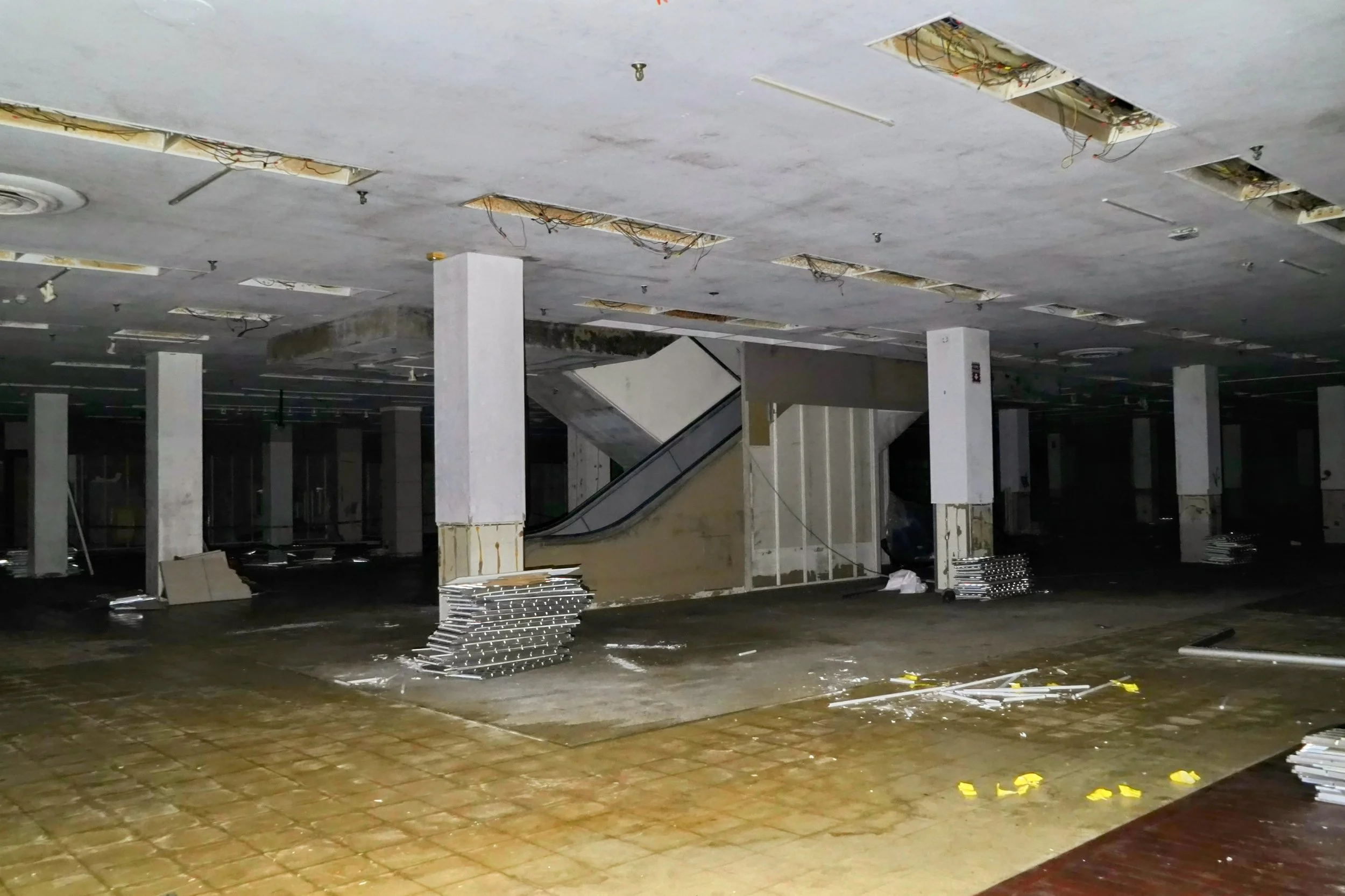 The Tarp on top of the Escalators one of the first things to be tarped off inside the store