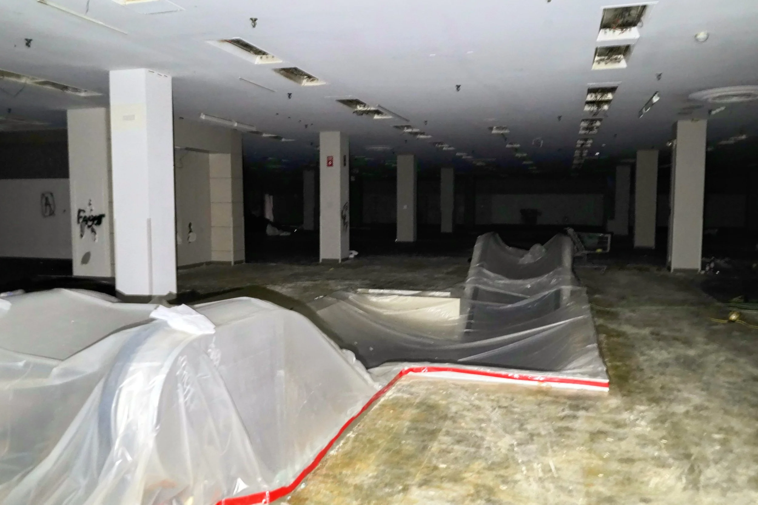 The Tarps surrounded the area on the 2nd floor