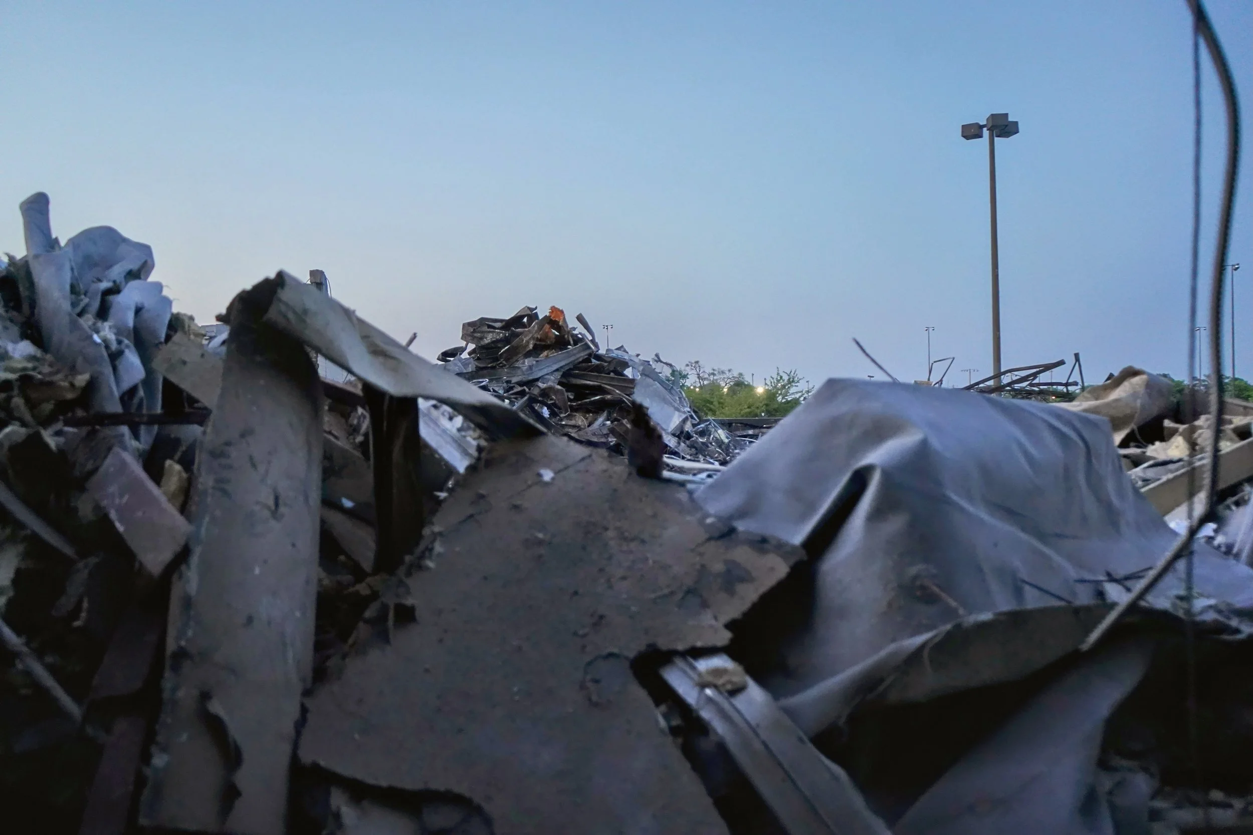 scrap metal laid across the debris field