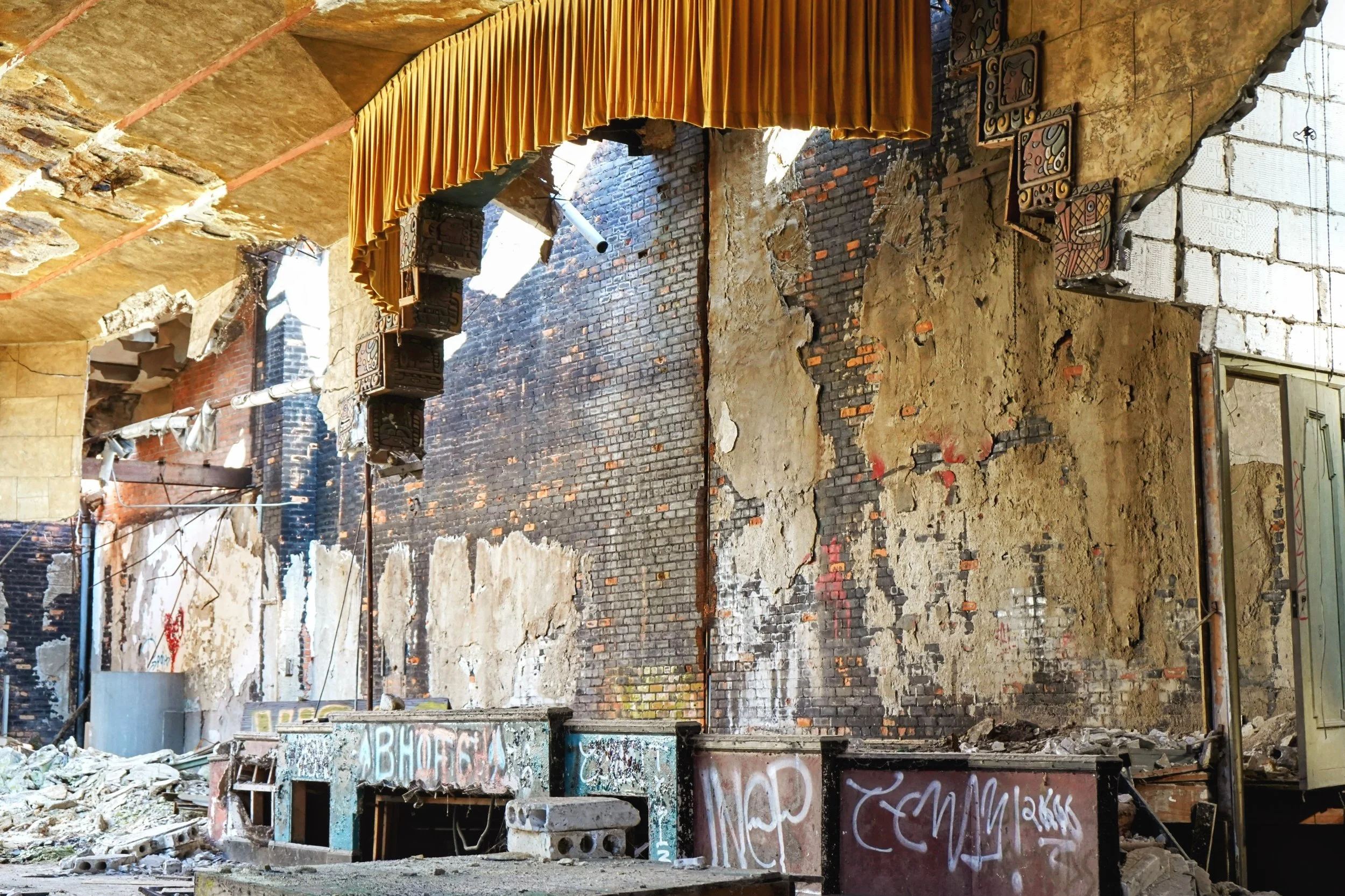 The Vanity Ballroom was some of the best architecture i’ve seen in a building along with the Grande Ballroom both definitive examples of Detroit Marvels. The heads on the walls though strange made the building pop. Though the Roof was half gone the acoustics of the building still surprisingly held up as talking you could hear what sounds would have once rocked the building